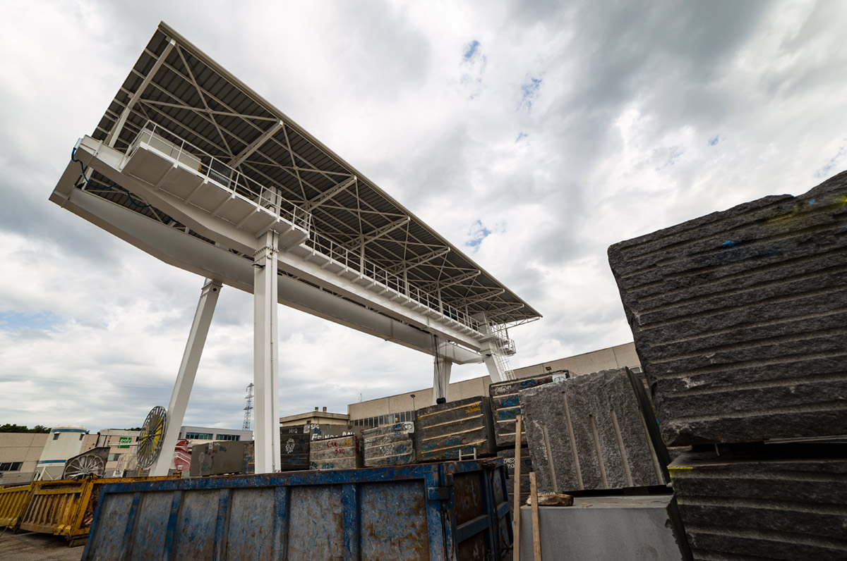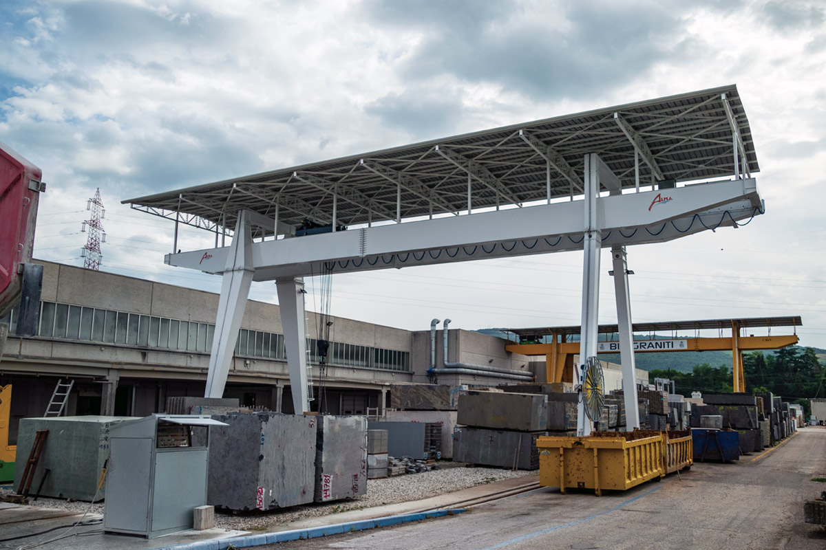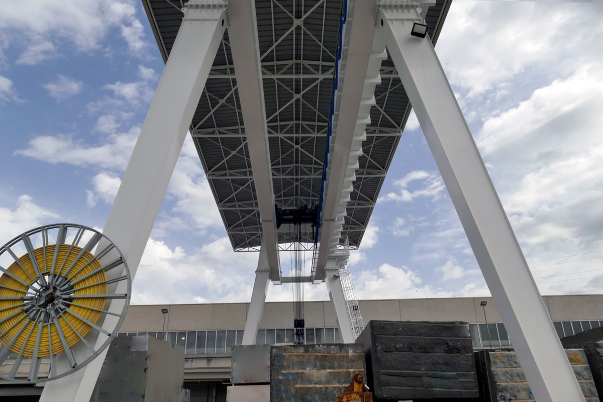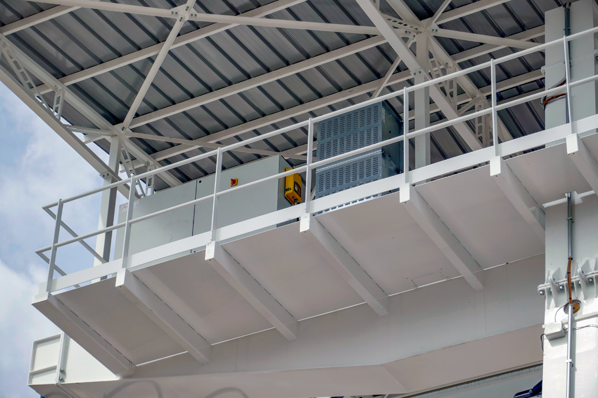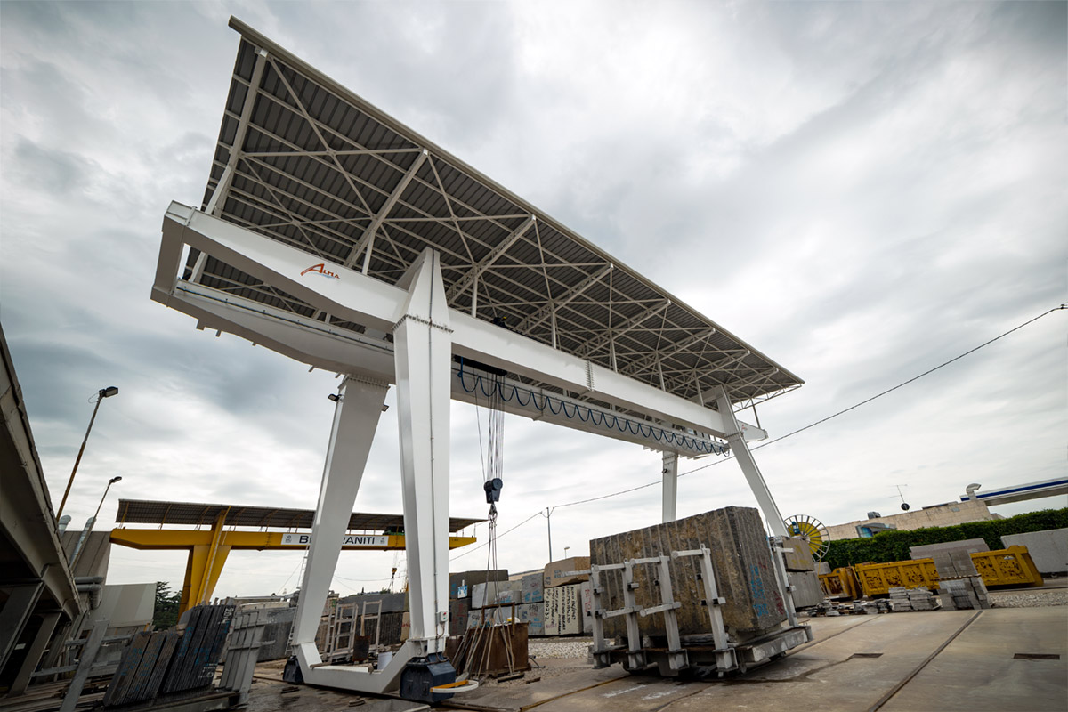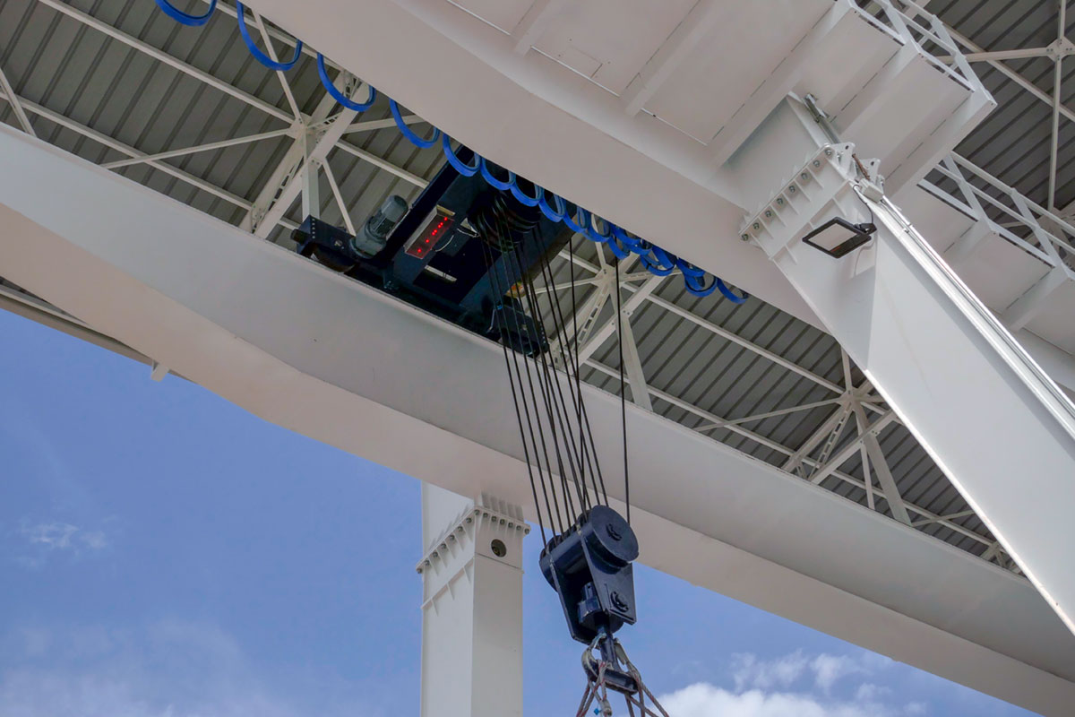 In questa gru, sono stati adattati tantissimi accorgimenti, dalla lubrificazione, verniciatura, meccanica elettronica ed impiantistica elettrica che hanno permesso ad Alma Service di lanciare una gru a cavalletto del tutto unica nel suo genere.